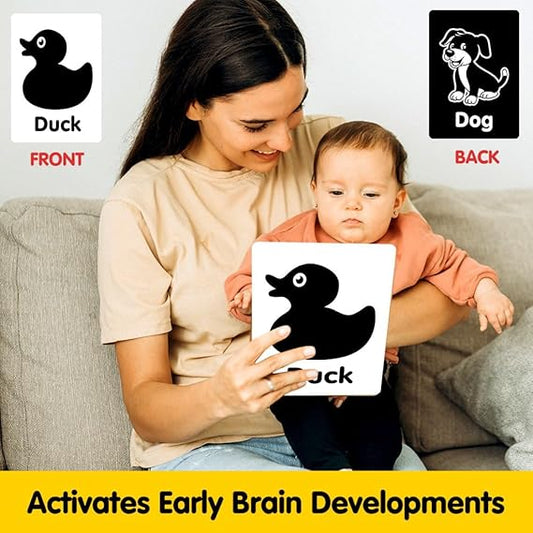 Newborn Brain Development Toys High Contrast Baby Flashcards Visual Stimulation Learning Activity Cards 0 to 12 Months Black and White Front and Back (56 Pictures-28 Cards)