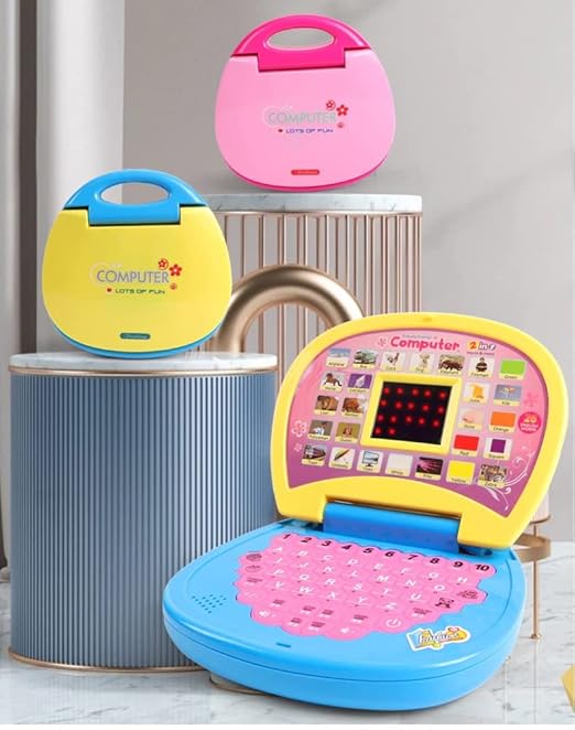 Educational Mini Laptop Computer for Kids Boys Girls - Learning Alphabet and Numbers with LED Display and Music - 16 x 14 cms - Colour As per Stock