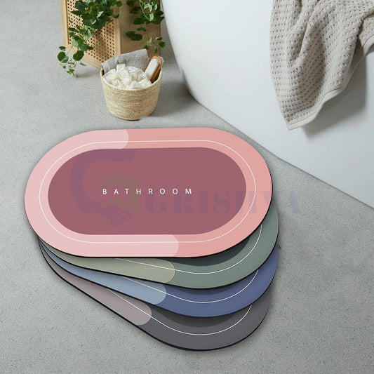 Super Absorbent Bathroom Doormat - Anti Slip, Quick Drying, Super Water Absorbent Foot Mat - 2Pc Oval & 1Pc Square Mat for Kitchen, Bathroom, Main Door, Rainy Season Non-Slip Doormat