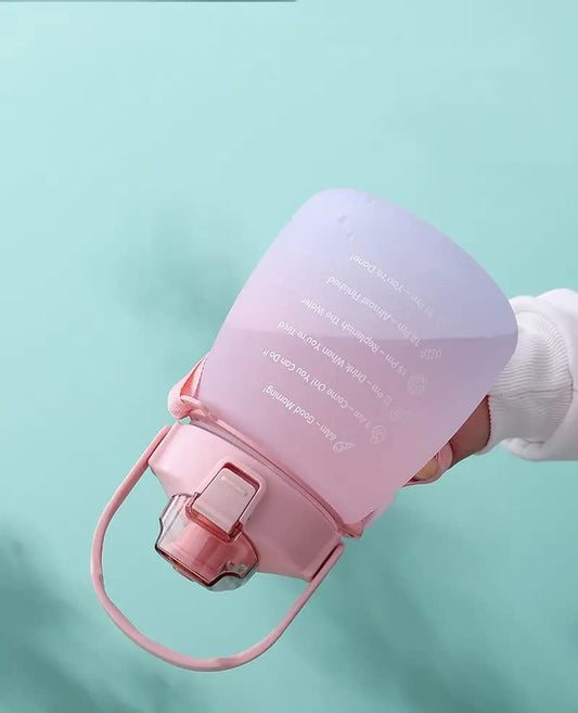 1500ml Motivational Water Bottle with Straw & Shoulder Strap | Pink