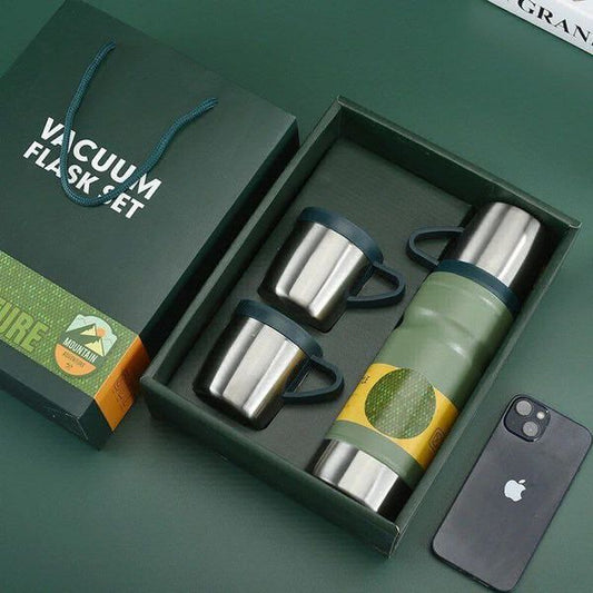 Stainless Steel Vacuum Flask and Flask Set 3 Steel Cups with Flask Combo Size-500ML (Black Colour) Ideal Gift for Diwali and Birthday